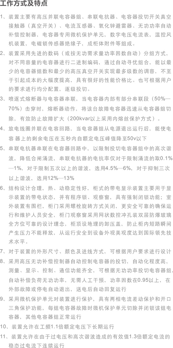 本裝置為固定補(bǔ)償方式,也可根據(jù)用戶要求采用手動(dòng)自動(dòng)分組投切。