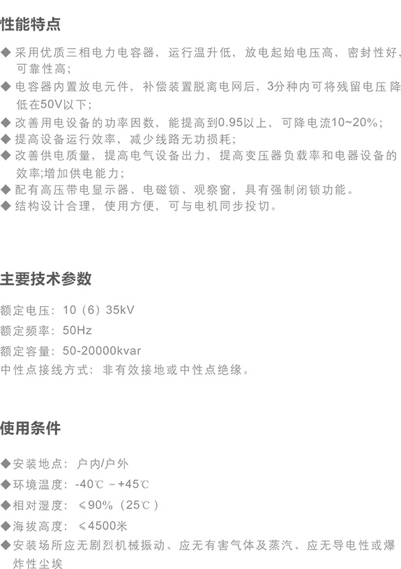 HYTBB型無功補(bǔ)償電容柜用于額定電壓1kV~35kV工頻電力系統(tǒng)中,