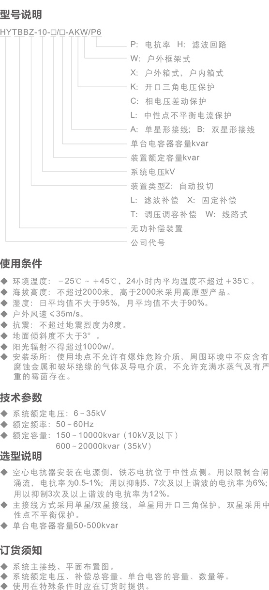 HYTBB系列中高壓無(wú)功補(bǔ)償裝置-戶(hù)內(nèi)框架主要用于6KV、10KV、24KV、35KV_相電力系統(tǒng),用以調(diào)整 平衡網(wǎng)絡(luò)電壓提高功率因數(shù)降低損耗提高供電質(zhì)量。