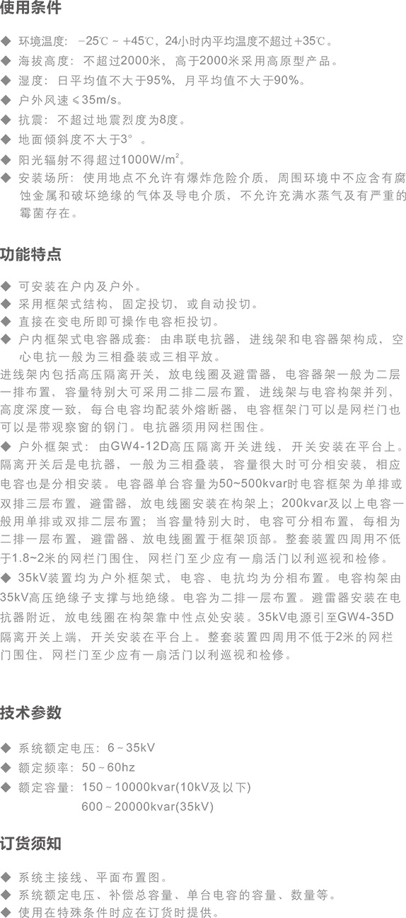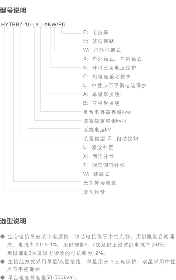 HYTBB系列高壓無功補(bǔ)償裝置-戶外框架式主要用于6kV、10kV、24kV、35kV三相電力系統(tǒng),用以調(diào)整平衡網(wǎng)絡(luò)電壓提高功率因數(shù)降低損耗提高供電質(zhì)量。
