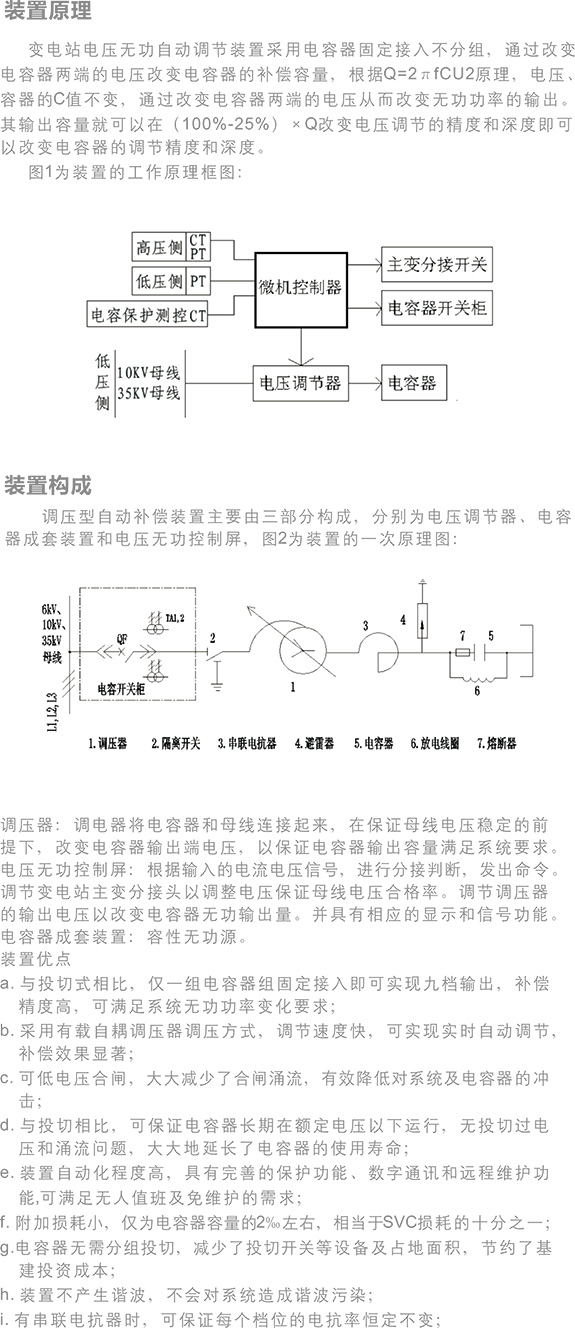 HYTBBT調(diào)壓調(diào)容式高壓無功補償裝置主要適用于6KV-220KV電壓等級的各級變電站,裝設(shè)與變電站 的6KV/10KV/35KV的母線上。產(chǎn)品廣泛的應(yīng)用于電力系統(tǒng)、冶金、煤炭、 石化等行業(yè),用于改善電壓質(zhì)量、提高功率因數(shù),降低線路損耗。