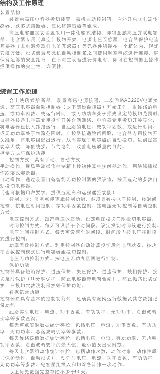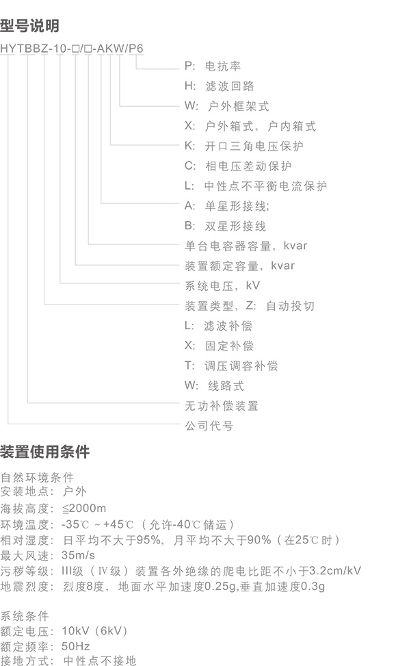 HYTBBW系列高壓線路無功補償智能裝置,主要適用在10kV(或6kV)配電線路上和用戶端,可安裝在架空線路線桿上,最高工作電壓12kV。作為提高功率因數(shù),降低線路損耗,節(jié)約電能,改善電壓質(zhì)量之用。實現(xiàn)對無功量的自動補償,使電能質(zhì)量和補償數(shù)量達到最佳值。也可以用于小型化終端變電所10kV(或6kV)母線無功補償。