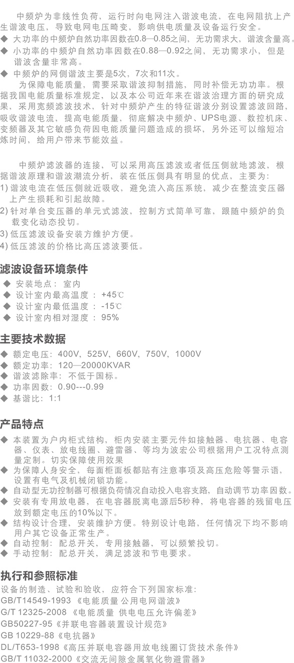據(jù)我國電能質(zhì)量標(biāo)準(zhǔn)規(guī)定,以及本公司近年來在諧波治理方面的研究成